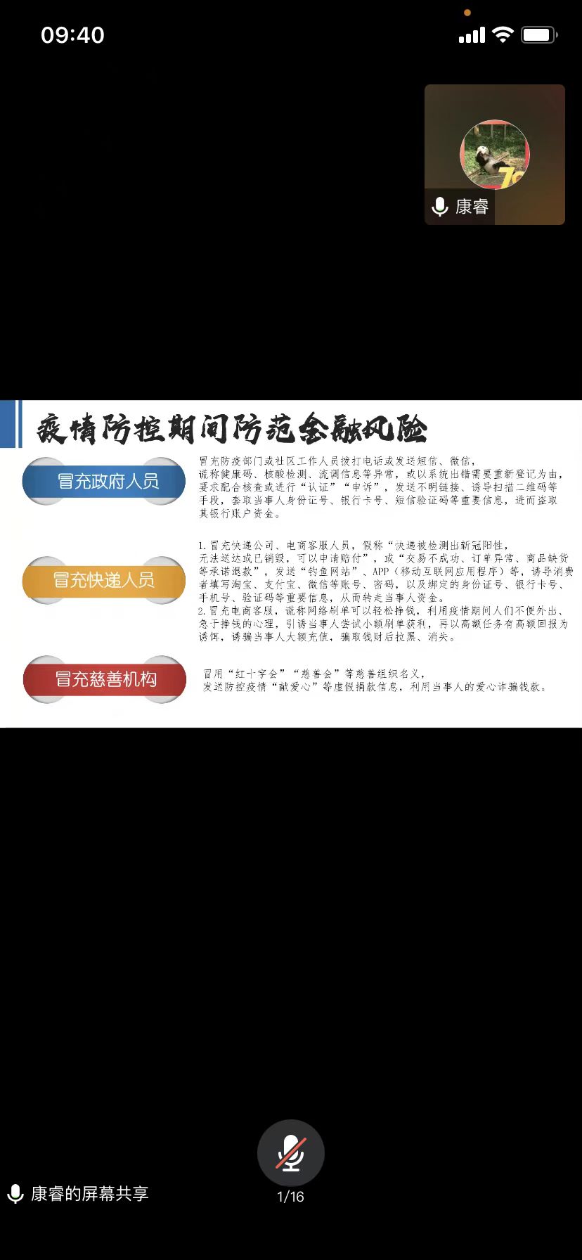 随后,贵州银行总行机关第九党支部党员、贵州财经大学07届国贸专业校友康睿同志面向法学院所有党员同志开展金融知识宣传和教育。宣讲过程中他向同学们着重介绍了如何远离“校园贷”的侵害、如何识别和规避疫情防控期间金融诈骗行为、如何有效保护个人信息等相关金融知识,以此提升在校大学生风险防范意识。宣讲结束后结合自身实际案例,与参加本次活动的同学们开展了“学长有话说”校友工作学习经验分享,以个人经历与同学们交流了如何过好大学生活、如何做好走上工作岗位、为社会贡献青春力量等内容,同时与同学们进行连麦交流,对同学们提出的问题认真解答。活动最后,组织所有参加本次活动的同学们参加了党史知识竞猜活动。活动开展过程中,法学院学生党支部的党员同志积极参与互动,营造了良好的活动氛围。