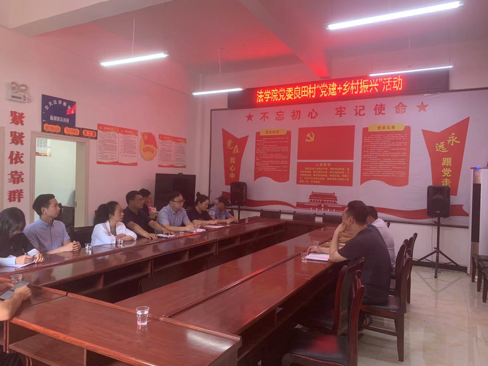 在施洞镇良田村,法学院与良田村驻村干部、村委会班子成员、村民代表等进行了沟通和交流,詹伟表示法学院会继续以贵州财经大学法律咨询服务点为载体,以“党建+法律+”的方式常态化为良田村乃至施洞镇提供法律援助、普法宣传、法律调解等服务,助力良田村乡村振兴。在交流过程中,法学院副教授杨森井对良田村在乡村振兴过程中的痛点和难点给出了自己的意见和看法,并以《深入贯彻星空体育网站入口(中国)官方网站法治思想,扎实开展民法典学习宣传》为题向出席会议的人员进行了宣讲。