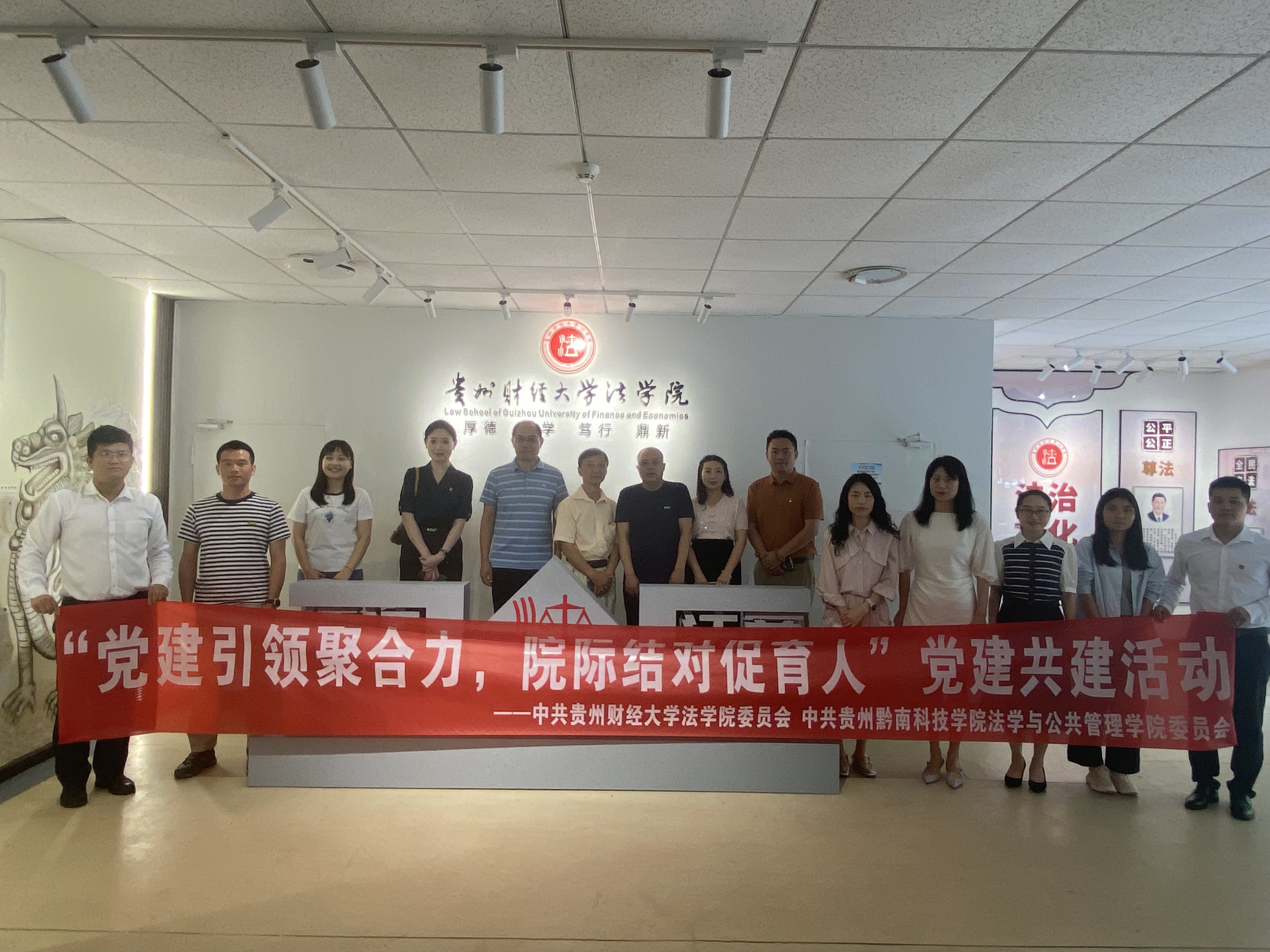 (法学院 向涛 报道|摄影)为贯彻落实好《贵州财经大学与贵州黔南科技学院党建工作结对共建工作方案》,6月12日,法学院邀请贵州黔南科技学院法学与公共管理学院来我院开展党建结对共建交流座谈会。