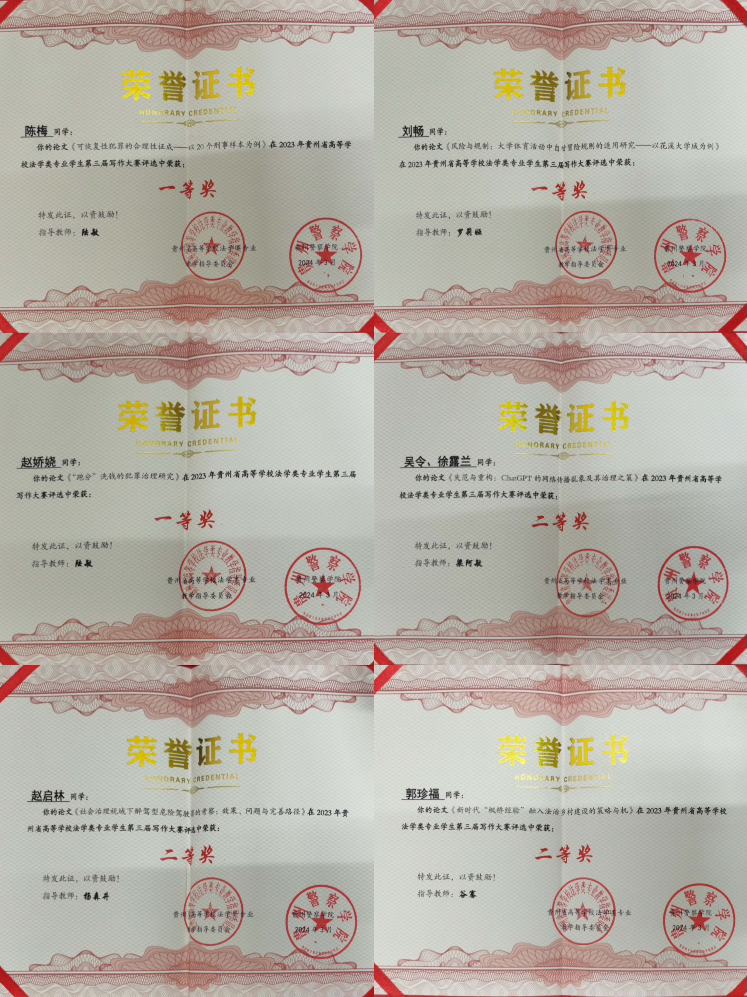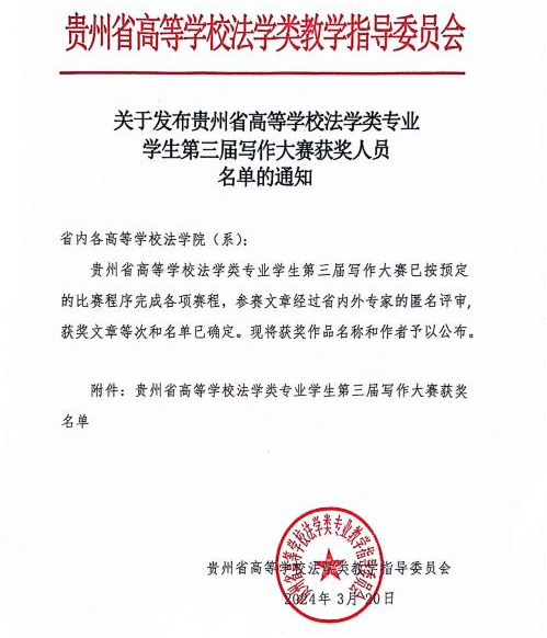 法学院在2023年贵州省高等学校法学类专业学生第三届写作大赛中取得佳绩