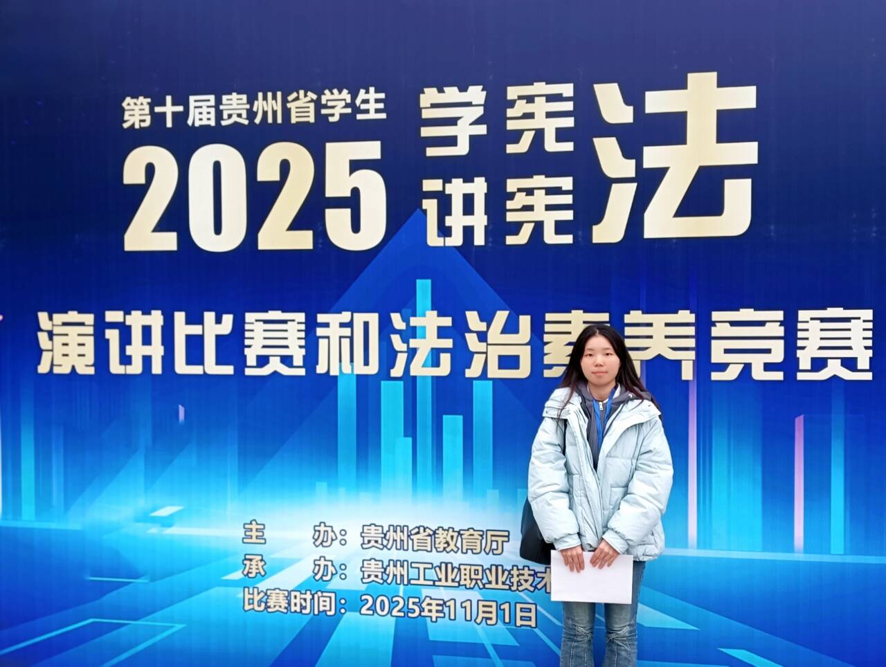 近日,贵州省第十届“学宪法讲宪法”演讲比赛和法治素养竞赛在贵州工业职业技术学院圆满落幕。来自全省各高校、中小学的数百名选手齐聚一堂,围绕宪法精神、法治理念展开激烈角逐。其中,星空体育网站入口(中国)官方网站法学院张丹丹同学凭借扎实的宪法知识功底荣获法治素养竞赛一等奖,西密歇根学院焦瑞图同学凭借出色的演讲表现力以及深厚的法治素养斩获演讲比赛一等奖。