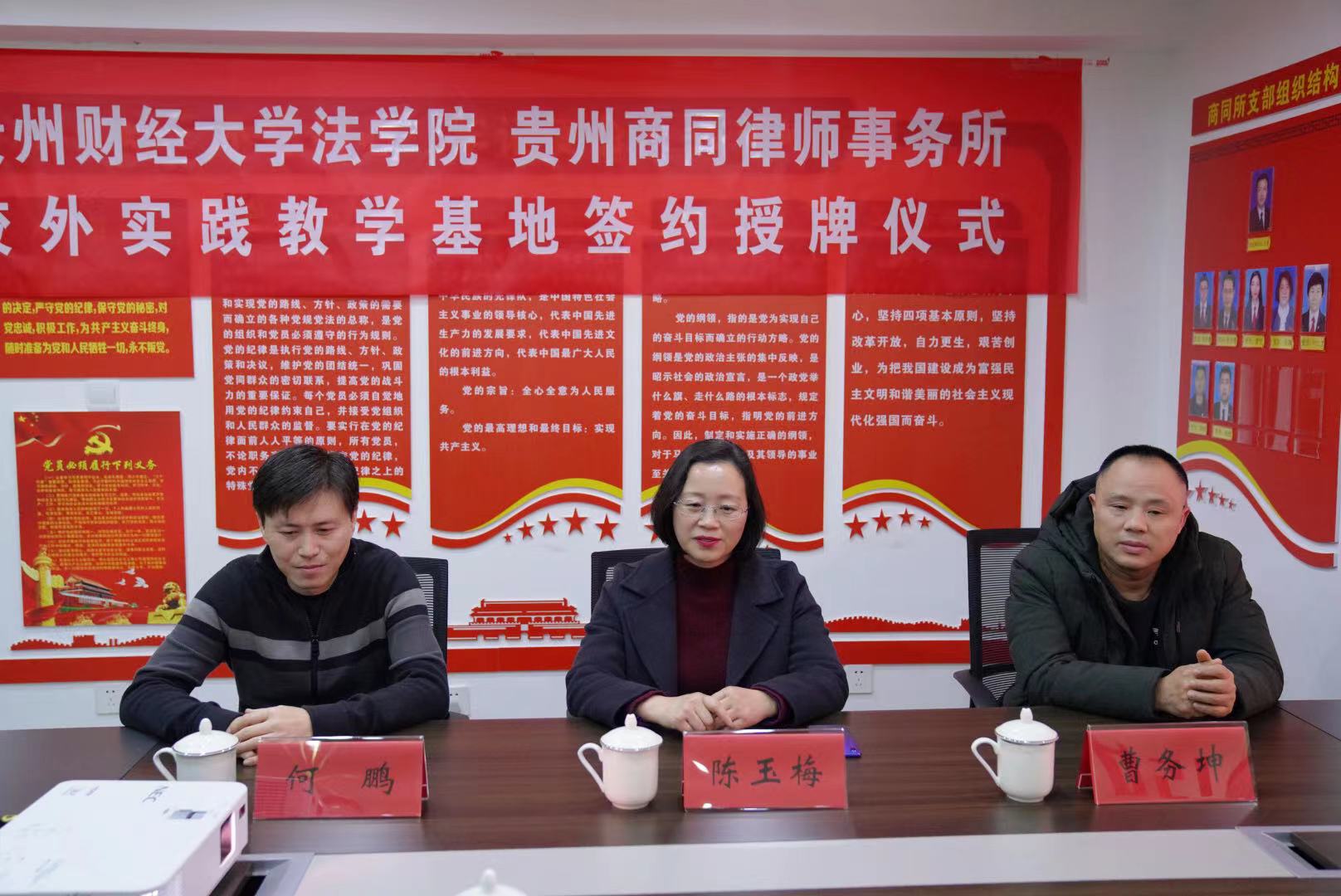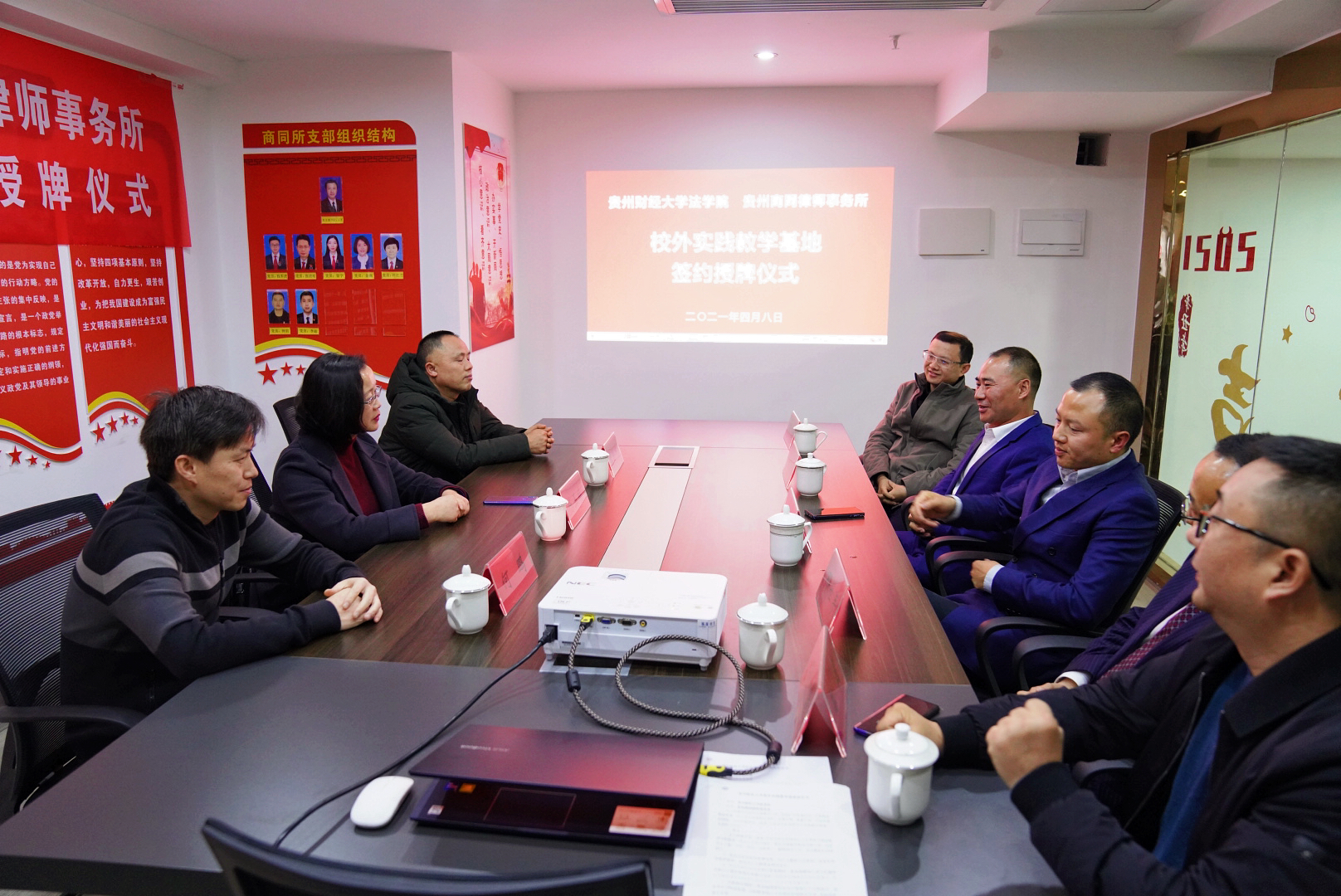 2021年4月8日,星空体育网站入口(中国)官方网站与贵州商同律师事务所校外实践教学基地签约暨授牌仪式在观山湖区贵州商同律师事务所举行,星空体育网站入口(中国)官方网站副院长陈玉梅教授、院长助理曹务坤教授、何鹏博士,贵州商同律师事务所在所的高级合伙人冉政林、王军、邓世军、陈佳、石磊参加签约既授牌仪式,并举行了座谈。