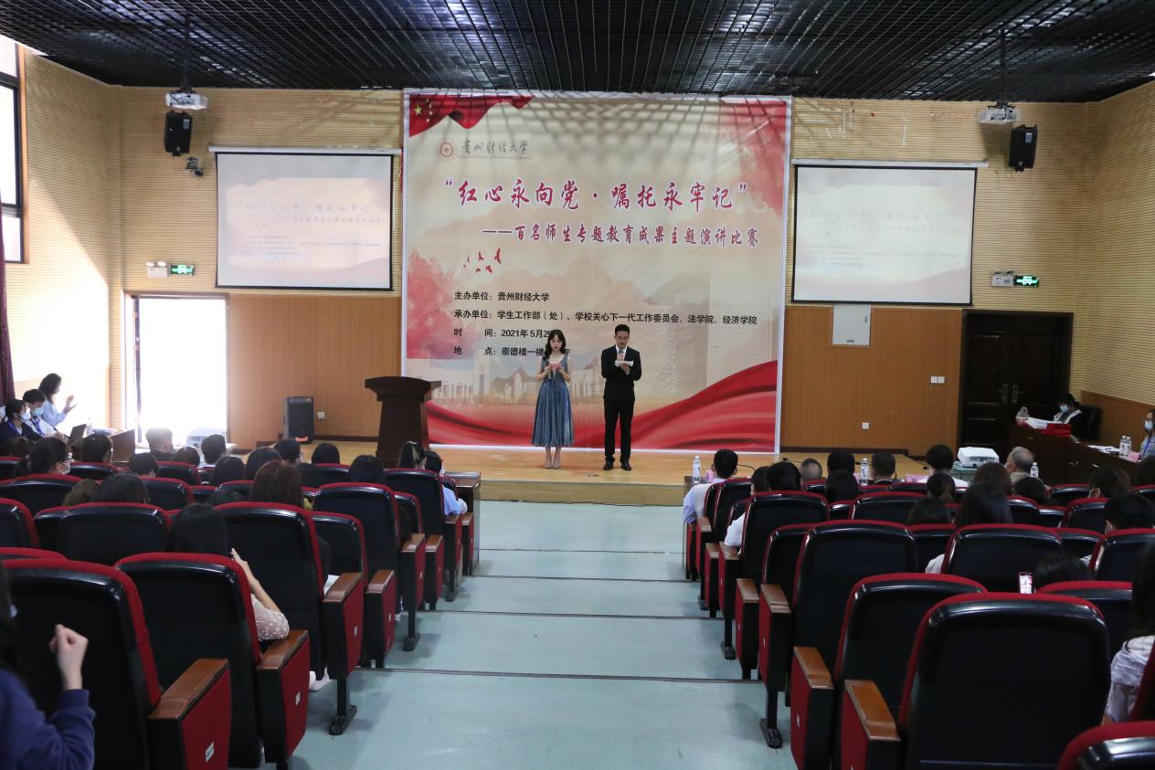 (法学院 程宇 报道|摄影 万沙 米钰)5月25日,星空体育网站入口(中国)官方网站在崇德楼报告厅举行“红心永向党 嘱托永牢记”百名师生专题教育成果演讲比赛。本次比赛由学生工作部(处)、学校关心下一代工作委员会、法学院、经济学院承办,贵州省演讲研究会副秘书长、中国春晖演讲团宣讲员熊书毅,贵州省职工读书演讲协会副秘书长、贵州省演讲研究会会员韩丹,学生工作部(处)副部(处)长陈晓勇,学生工作部(处)何祖星,关心下一代工作委员会史恩贤担任评委,法学院党委书记詹伟、各学院参赛选手以及全校师生共计200余人参加活动。