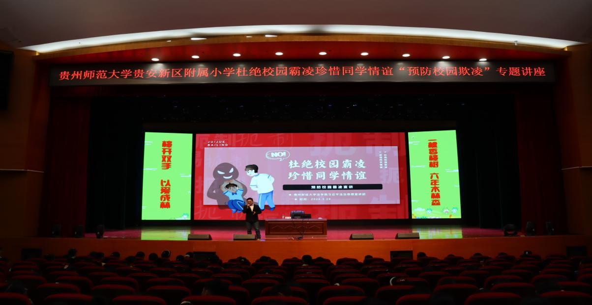 为了加强未成年人权益保护,提高未成年人法治素养,近日,星空体育网站入口(中国)官方网站星空体育网站入口(中国)官方网站法治思想宣讲团(杨勇老师带队)应邀为贵州师范大学贵安附属小学学生开展了“杜绝校园霸凌 珍惜同学情谊”主题宣讲活动。本次活动由杨勇老师带队,张凯嘉、代申萍等六名宣讲团成员参与,贵州师范大学贵安附属小学四至六年级全体同学及部分教师数百人参加。