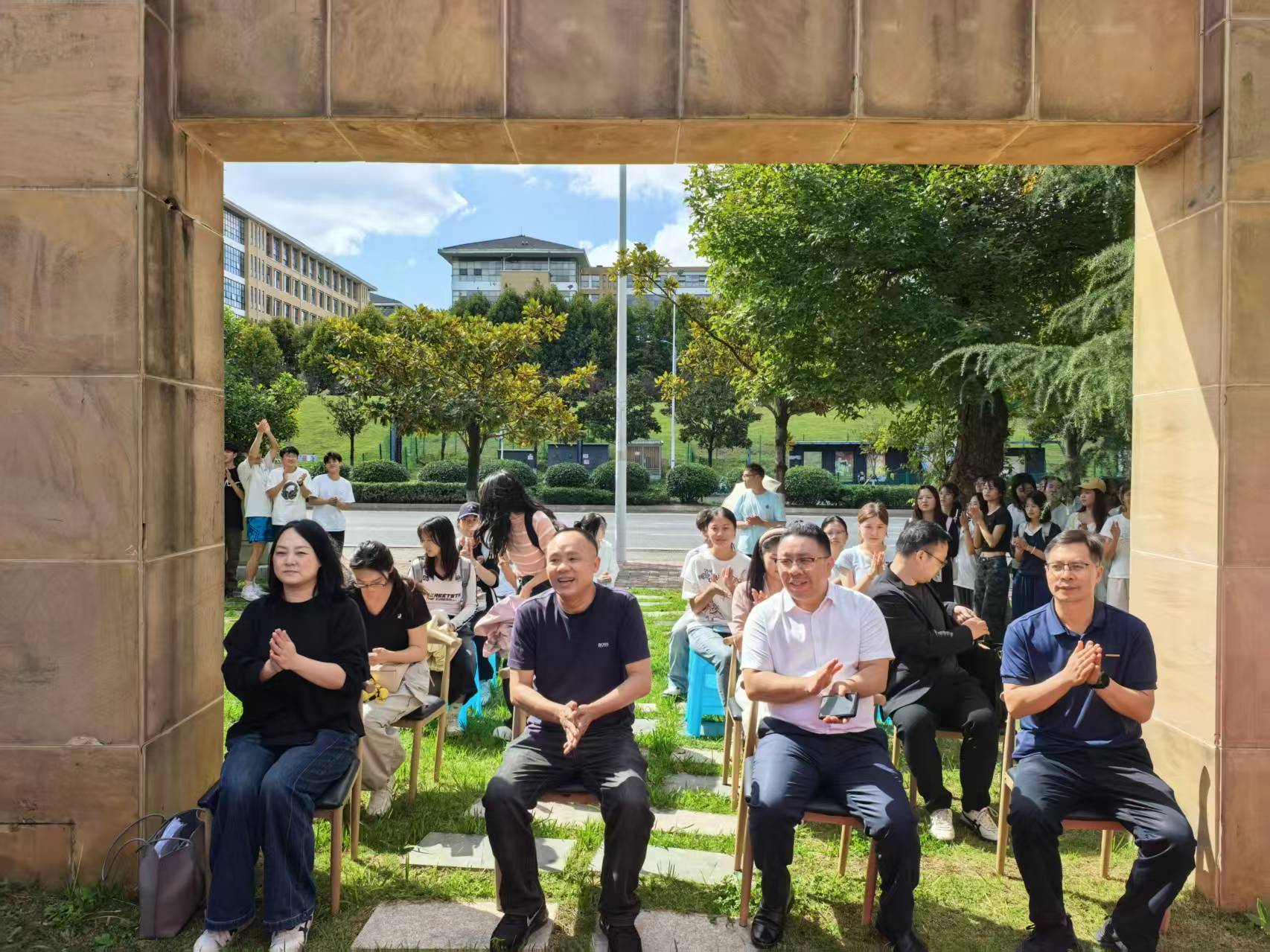(法学院 杨燕 报道|摄影 敖雪)2025年10月17日,“星空体育网站入口(中国)官方网站、文学院法律公益服务中心暨新媒体实操基地”成立仪式在贵州财经大学11号、12号景观房隆重举行。法学院副院长(主持工作)曹务坤,文学院党委副书记贾秋玲,文学院副院长张武桥,贵州跃达禾律师事务所创始人、主任谢忠俊,副主任杨泽出席活动;法学院、文学院教师代表,律师代表及法学院、文学院50余名学生参加活动,共同见证这一兼具公益价值与实践意义的重要时刻。