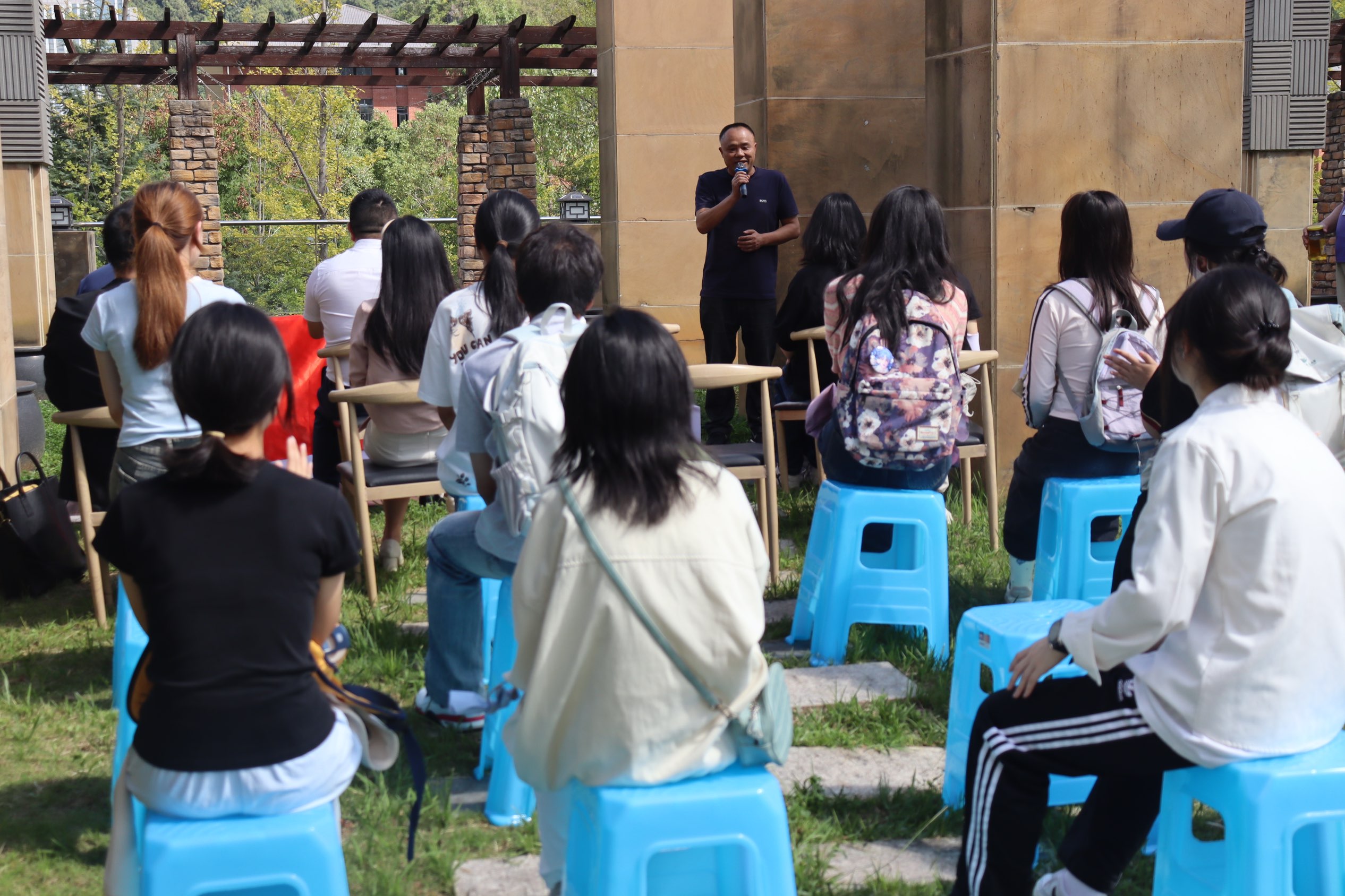 谢忠俊及杨泽围绕基地的核心任务做了详细讲解,对普法内容策划、法律直播运营、公益法律咨询、法律顾问团队等特色岗位进行介绍,并表示通过参与基地的新媒体普法内容创作、法律公益服务等活动,学生们能够将理论知识与实践相结合,提升专业技能和社会责任感,为未来投身法治事业奠定坚实基础。